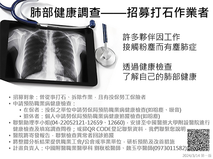 【肺部健康調查】招募打石作業者