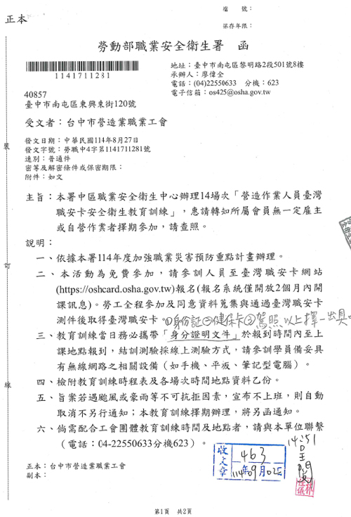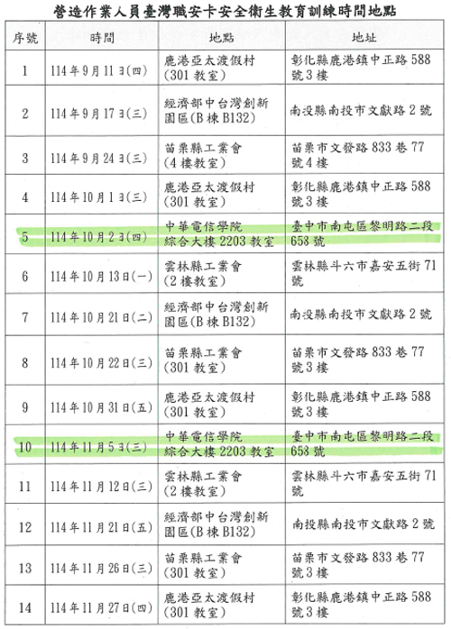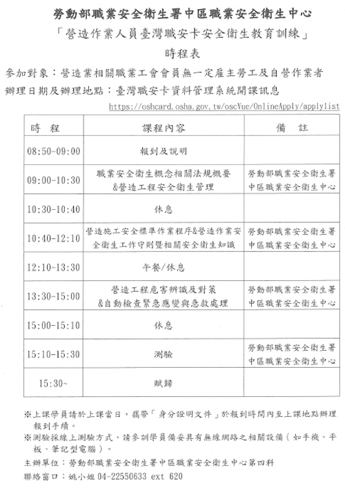營造作業人員臺灣職安卡安全衛生教育訓練